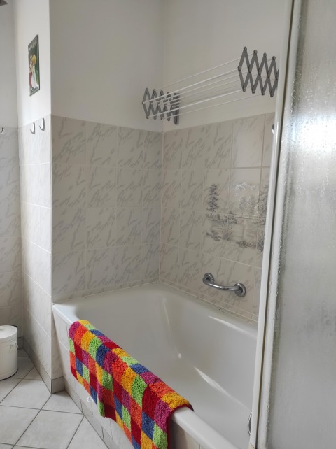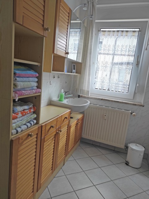 Bad mit Badewanne und Duschfunktion, Fön ist vorhanden